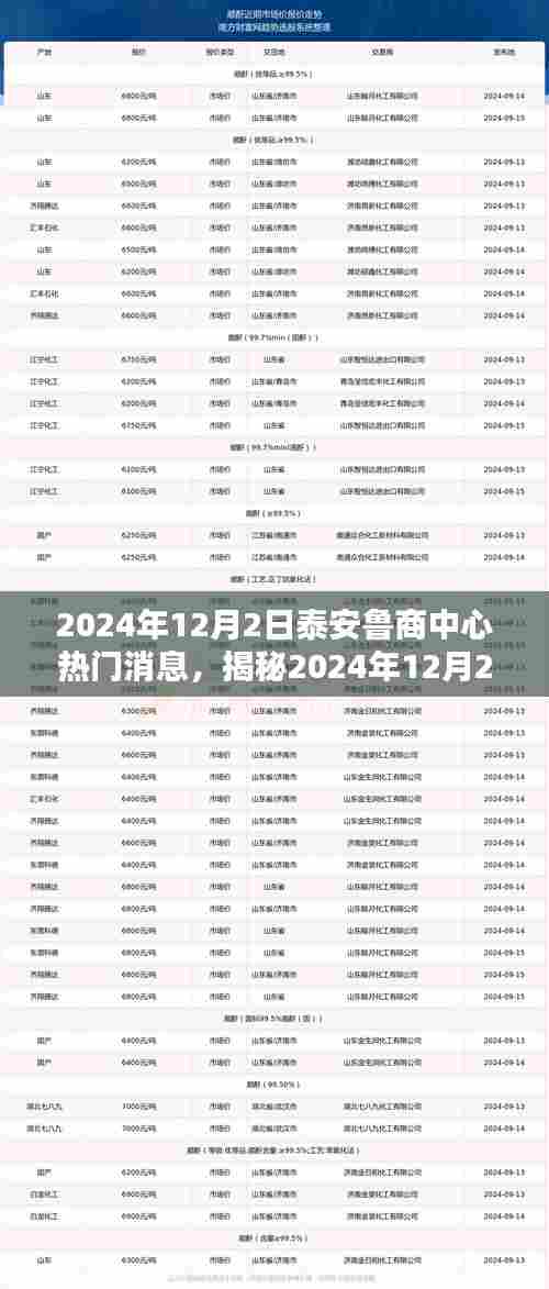 亲爱的小红书社区的朋友们,今天我要和大家分享的是关于2024年12月2日泰安鲁商中心的热门消息,在这个日新月异、充满活力的地方,总是有着让人瞩目的新闻和事件,让我们一起走进这个充满故事的地方,探寻那些令人兴奋的话题吧!