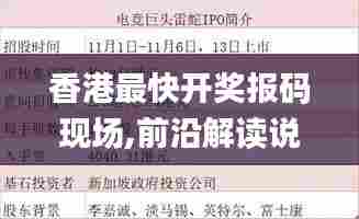 香港作为国际金融中心,拥有诸多特色活动和平台,其中之一便包括人们所热衷的彩票开奖。众多彩票爱好者翘首期待的便是能第一时间获得开奖结果,而在众多开奖场所之中,最快的开奖报码现场显得尤为突出。今天,我们将深入探索香港最快的开奖报码现场,这是一个集合了前沿科技和高效服务的平台,旨在为彩民提供即时、准确的开奖数据。