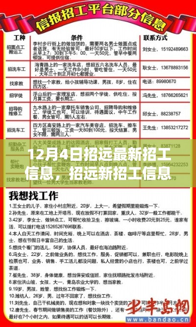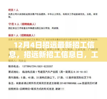 摘要:在招远最新招工信息日(12月4日),我们了解到关于工作、友情和家庭温馨的故事。这一天,招远地区发布了一系列招工信息,涵盖了多个行业的工作岗位。这些故事不仅展示了人们追求工作的热情,还体现了友情和家庭的温暖。通过招工信息,许多人将找到合适的工作,实现个人价值,同时享受友情和家庭的关爱。