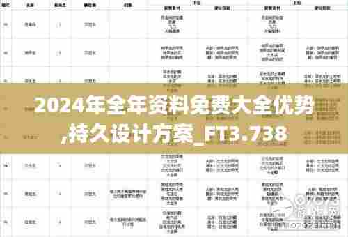 随着数字化时代的到来,资料的获取已经成为日常生活中不可或缺的一部分。无论是学习、工作还是娱乐,我们都需要各种各样的资料来丰富我们的生活。为了满足这一需求,2024年全年资料免费大全以其独特的优势和持久的设计方案,成为人们获取资料的首选平台。这篇文章将详细介绍2024年全年资料免费大全的优势,以及其持久的设计方案_ft3.738。