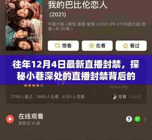 在这个充满新鲜气息的时代,直播风潮席卷全球,每年的直播新规和动态都牵动着无数网友的心弦,就在往年12月4日,直播界掀起了一股不小的波澜——最新直播封禁事件,我要带大家走进隐藏在小巷深处的特色小店,探寻直播封禁背后的故事,感受其独特魅力,激发你的探索欲望。
