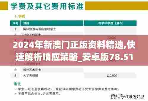 随着科技的不断进步和全球化的发展,澳门作为一个重要的国际旅游城市和娱乐中心,不断涌现出大量的正版资源和精选资料。2024年,新澳门的正版资料精选成为了许多人关注的焦点。这些资料涵盖了娱乐、旅游、商业、教育等多个领域,为游客和居民提供了丰富和高质量的信息。本文将对2024年新澳门正版资料精选进行快速解析,并探讨如何有效响应这一变化,以适应新时代的需求。