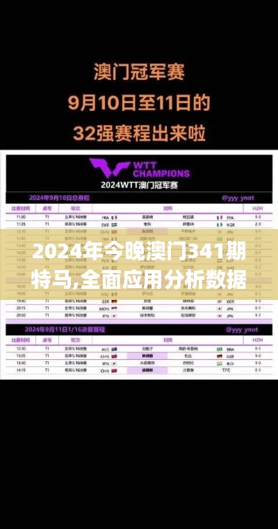 在这个快节奏的数字化时代,数据分析已经成为各行各业获得竞争优势的关键。今晚,我们将专注于2024年澳门341期特马的全面应用分析数据,以粉丝版6.503的形式呈现给各位读者。本文旨在通过对澳门特马赛事的深入分析,为马迷们提供全面的预测和策略,以便更好地把握赛马的脉搏。