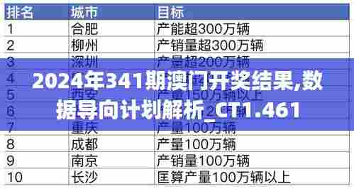 在博彩领域,澳门一直以其独特的魅力和历史闻名遐迩。2024年341期澳门开奖,不仅引起了全球博彩爱好者的广泛关注,也被许多数据分析师视为一个数据分析的标杆案例,其所涉及的数据导向计划解析,对于理解开奖结果背后的规律和机制具有重要意义。在本文中,我们将深入探讨澳门开奖的数据导向计划解析,并结合CT1.461标准,对341期澳门开奖结果进行详细分析。