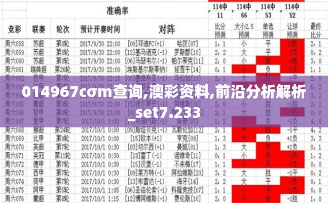 在“前沿分析解析_set7.233”中提出的一系列预测模型和统计假设,都是建立在大量的澳彩数据和"014967cσm查询"结果之上的。这使得我们的分析更加精准,为彩民提供更可靠的投注参考。