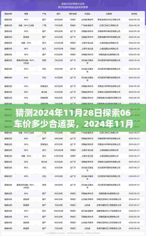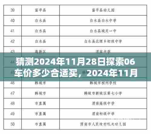 随着汽车市场的不断发展与成熟,消费者对购车时机的把握愈发重视,特别是在新车上市或旧车市场波动时,如何判断一个特定日期的车型价格是否合适购买成为消费者关注的焦点,本文将围绕“猜测2024年11月28日探索06车价多少合适买”这一主题展开讨论,从不同角度阐述观点,帮助消费者做出明智的购车决策。