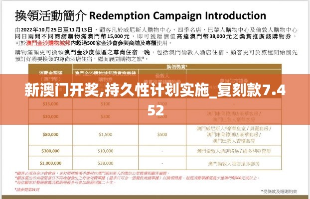 新澳门作为澳门的一部分,一直是暨游客和居民所关注的热点区域。近年来,新澳门开奖成为了该区域的一大亮点,吸引了不少博彩爱好者的目光。持久性计划的实施不仅对新澳门的经济发展有着深远影响,也为澳门特区的繁荣稳定做出了贡献。现在,让我们走进复刻款7.452的新澳门开奖背后的故事,并探讨其实施持久性计划的重要性及深远影响。
