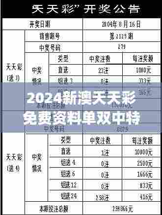 所谓的“2024新澳天天彩免费资料单双中特”主要是指在2024年推出的新澳地区彩票市场中,通过免费提供的资料和分析工具,帮助彩民朋友精准选择号码,从而提高中奖概率。这种彩票策略不仅为彩民提供了便利,也增加了彩票市场的活力和趣味性。