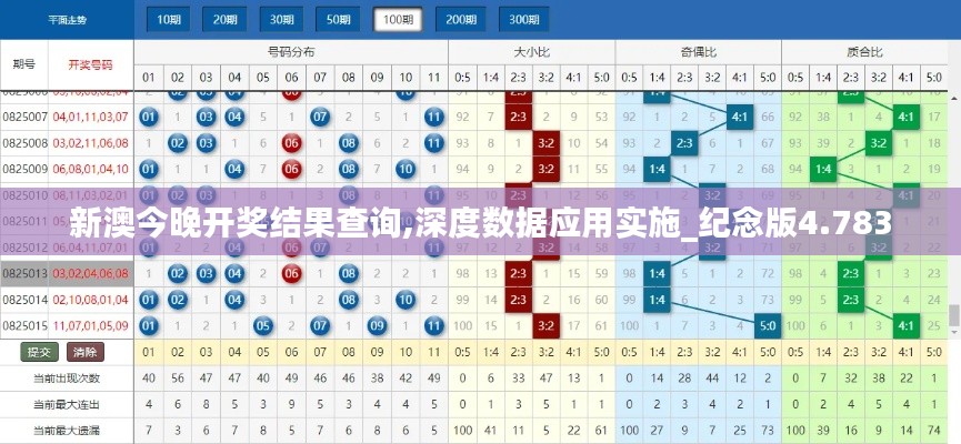 在这个信息化飞速发展的时代,数据的深度应用已经成为了各个领域中不可或缺的一部分。彩票行业也不例外,通过深度数据应用的实施,可以更好地预测和分析彩票开奖结果。今天,我们就以“新澳今晚开奖结果查询,深度数据应用实施_纪念版4.783”为主题,为大家详细解读新澳彩票开奖结果查询的相关信息和深度数据应用实施的重要意义。