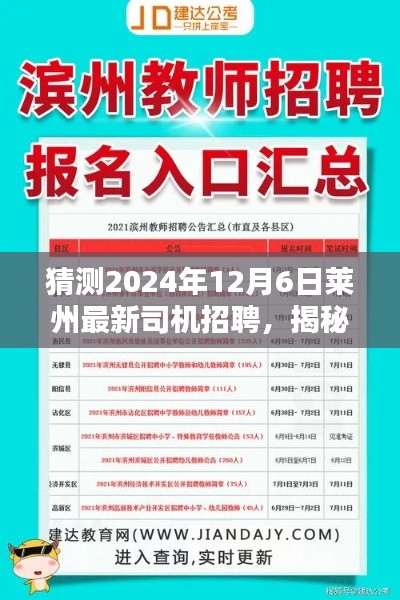 随着时代的发展,交通物流行业日新月异,莱州作为一个重要的交通枢纽城市,司机人才的需求也在不断变化,本文将围绕“猜测2024年12月6日莱州最新司机招聘”这一主题,探讨未来莱州司机招聘市场的变化与趋势。