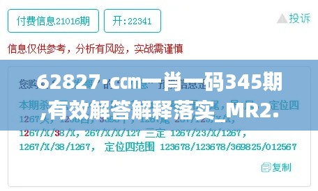 在澳门特别行政区,政策文件的发布是政府与民众沟通的重要桥梁,它不仅关系到政策的有效传达,还直接影响到民众的理解和执行。针对最新的政策文件"62827·c㎝一肖一码345期",文章将提供详细的解答与解释,以确保政策得到有效落实。本篇文章的核心在于通过对政策的深度解读,理解其背后的逻辑和意图,进而指导实际行动和操作。此政策文件编号"MR2.405",旨在对特定领域进行规范和指导,确保持续稳定发展。