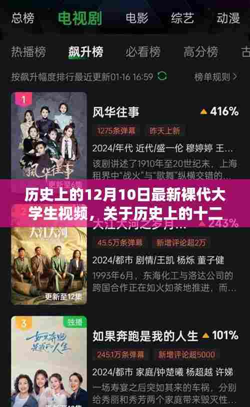历史上的十二月十日,是一个充满纪念意义的日子,这一天,不仅承载着无数历史事件和人物的记忆,也在当代社会,尤其是大学生群体中,留下了深刻的印记,随着科技的进步和互联网的普及,大学生视频内容逐渐崭露头角,成为年轻一代交流、学习和娱乐的重要载体,本文将重点探讨当代大学生视频内容的演变及其影响,特别是要点一、要点二和要点三。