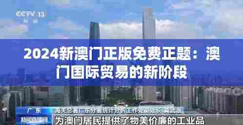2024新澳门正版免费正题:澳门国际贸易的新阶段,澳门将继续努力推动澳门国际贸易的发展,加强与世界各地的经济合作,提升澳门在国际贸易中的地位和影响力。新澳门将持续优化营商环境,提升澳门国际贸易的综合竞争力,为澳门的经济发展注入新的活力,努力实现澳门经济的可持续发展目标。