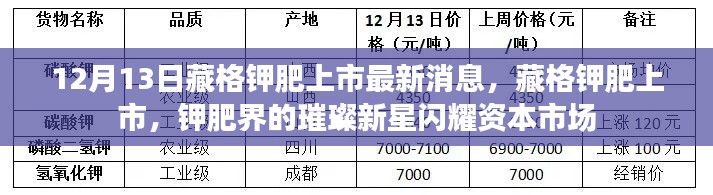 在资本市场的大潮中,一则关于藏格钾肥上市的消息引起了广泛关注,12月13日,藏格钾肥成功上市,成为钾肥领域的一颗璀璨新星,其背后的故事、重要事件、影响以及在特定领域或时代中的地位值得我们深入探究。