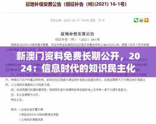 在信息时代的大潮之下,知识民主化已经成为社会发展的必然趋势。新澳门在推动这一进程中,始终坚持将信息、知识向公众开放,以期建立更加公正、包容的社会。2024年,我们期待新澳门政策文件的出台,实现资料免费长期公开,迎接知识民主化的全新纪元。