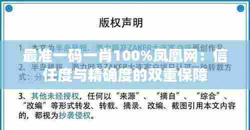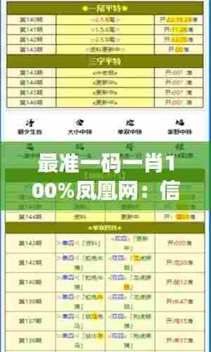 在当今这个信息爆炸的时代,数据的准确性和可靠性已经成为了人们最为关注的问题之一。尤其是在金融市场、政策发布等领域,准确的信息能够为决策者提供重要的参考和支持。而"最准一码一肖100%凤凰网"正因为其在信任度与精确度方面的双重保障,成为了越来越多人的信赖之选。下面,我们就来详细解析"最准一码一肖100%凤凰网"是如何在信任度与精确度方面实现双重保障的。