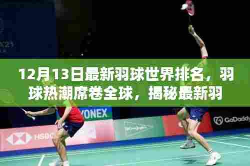 摘要:最新羽球世界排名于12月13日公布,全球掀起羽球热潮。本次榜单展示了顶尖羽毛球选手的排名,反映了全球羽球竞技的激烈竞争。读者可以一睹最新排名,了解羽球世界的格局和动态。