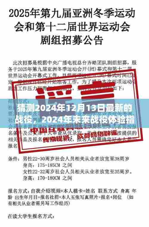摘要:,,预测到2024年12月13日将出现最新战役,未来战役体验指南带你领略虚拟战场的魅力。想要参与并赢得这场战役,你需要先了解游戏规则和战略。通过注册参与,你将进入虚拟战场,与其他玩家一较高下。掌握战斗技巧、团队协作和策略布局是获胜的关键。不断升级装备和提升技能,适应不断变化的战场环境。通过智慧和勇气,你将赢得这场虚拟战役的荣耀。