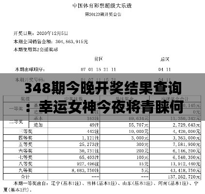 人们常说,幸运是难以捉摸的,但也是每个人都渴望得到的。今晚的“348期今晚开奖结果查询:幸运女神今夜将青睐何方”,无疑是一年中最为激动人心的时刻之一。每个人都希望成为幸运女神眷顾的对象,哪怕是一个小小的数字,也可能改变一个人的命运。