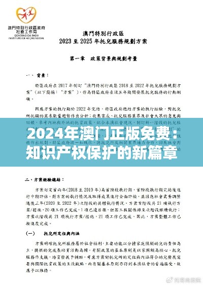 随着全球经济一体化的不断深化和数字化转型的加速推进,2024年澳门迎来了版权管理和知识产权保护的新篇章。在这一背景下,“澳门正版免费:知识产权保护的新篇章”政策文件的发布,无疑是对澳门乃至全球版权保护制度的一次革命性创新尝试。该政策旨在通过正版免费和技术转让等手段,充分激发创新活力,促进知识共享,同时也确保创作者和企业能够获得合理的经济效益。在此,我们将深入解析这一政策文件,探讨其对澳门乃至全球知识产权保护所带来的深远影响。