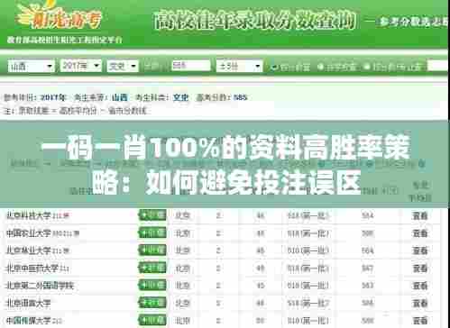 随着博彩活动的普及,越来越多的人参与到各种形式的投注中。在澳门这个特殊的地区,博彩已经成为了一种文化和经济活动的重要组成部分。然而,如何提高投注的胜率,如何在投注过程中避免误区,成为了众多投注者和政策制定者关注的重点。这篇文章将会详细介绍“一码一肖100%的资料高胜率策略”,以及如何在实际投注中避免常见的误区。