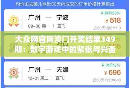 转载请注明来自浙江大溪洋泵业制造有限公司,本文标题:《大众网官网澳门开奖结果349期:数字游戏中的紧张与兴奋》