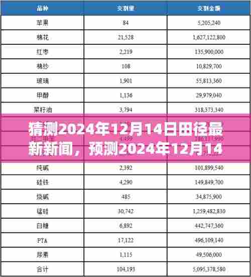 随着时光的推移,我们迎来了充满竞技激情的2024年,田径运动作为体育界的璀璨明珠,不断吸引着全球的目光,本文将基于当前趋势与未来展望,猜测并探讨即将到来的2024年12月14日田径领域的最新新闻,我们将重点关注要点一:新星崛起、要点二:赛事动态以及要点三:技术革新与训练理念更新。